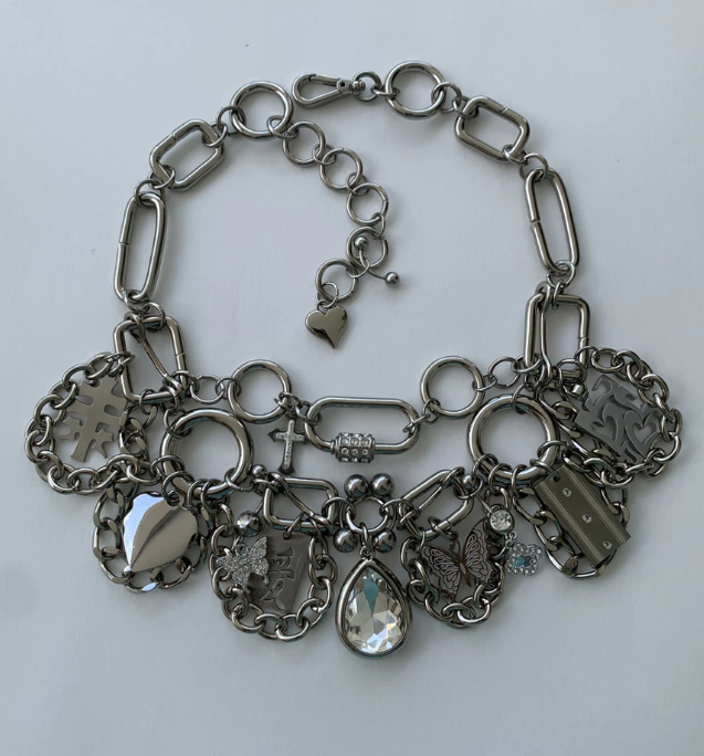 Apresentamos o Colar Exclusivo 17, uma peça deslumbrante que combina duas correntes grandes e estilizadas, ideal para quem busca um visual marcante e cheio de personalidade. Com piercings e diversos pingentes brilhantes, este colar é a escolha perfeita para realçar qualquer look.